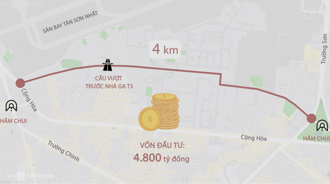 Theo ông Phúc, dự án này có hơn 90% đất quốc phòng, trước mắt sẽ khởi công hạng mục hầm chui ở nút giao Trần Quốc Hoàn – Phan Thúc Duyện; các gói thầu còn lại sang năm sẽ triển khai khi toàn bộ mặt bằng được giao. “Tuyến đường nối dự kiến hoàn thành tháng 8/2024, để đồng bộ khai thác ga T3 Tân Sơn Nhất và giảm ùn tắc cho khu vực sân bay”, ông Phúc nói.